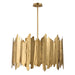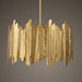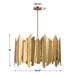 Industrial metal segment sheets welded with rough cut edges juxtaposed with a gold leaf finish give an elegant look to this chic pendant. 8-60 watt max candelabra sockets. Bulbs not included. Supplied with 15' wire, 3-12" stems and 1-6" stem for adjustable installation.