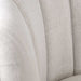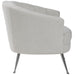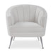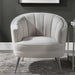 The perfect balance of retro and modern style, this welt trimmed barrel back chair is covered in a casual light tan fabric with channel tufting and polished nickel tapered legs.