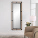 This forged iron mirror frame is finished in a textured rust black that is wrapped in natural rope bringing a coastal feel to any room. The mirror is surrounded by a generous 1 1/4" bevel. May be hung horizontal or vertical.