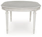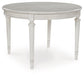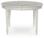 Transform your home into a haven of timeless elegance with this dining extension table. Traditionally styled, its classic antiqued white finish is paired with reeded legs and a tabletop with a butterfly-matched veneer pattern. With the removable center leaf, it effortlessly transitions from round to oval to seat six comfortably. Whether you're settling in at mealtime or working from home, this table serves your sense of relaxed refinement beautifully.