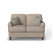 Spirit Meets Style Cozy up with a loved one or claim it all for yourself with the Moxy loveseat that lets you personalize details for the perfect look and feel. A classic silhouette with casual, curved sock arms sits on square tapered legs that are available in three distinct finishes—Florentine, Valencia, or Urban Renewal—to complement any décor. The removable T-shaped seat cushions offer a distinctive look and added comfort. Sink into the ideal level of support with your choice of our luxury or plush cushions. Complete the look and showcase your lifestyle with hundreds of different fabric choices, including high-performance and sustainable textiles. Superior frame construction and our patented C-Flex Blue Steel Spring™ ensures your Moxy can be enjoyed for years to come. A classic silhouette with casual, curved sock arms Off-the-floor square tapered legs come in Valencia, Florentine, or Urban Renewal finishes Semi-attached back cushions remain fixed in place, ensuring a clean look and comfortable feel Removable seat cushions in a distinctive T-shaped style Sit comfortably with luxury cushions featuring a moderately firm polyurethane foam core wrapped with a soft fiber wrap, or select plush cushions featuring a high-resiliency polyurethane foam core wrapped with a soft fiber wrap for added support Built to last with the Flexsteel patented C-Flex Blue Steel Spring™ that provides an elevated level of support Available in hundreds of fabric choices, including those with robust performance and sustainability characteristics Comes with two accent pillows to enhance comfort and style Model Number: 5017-20 Dimensions 37H x 61W x 39L