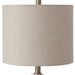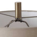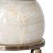 This buffet lamp features a delicate design with traditional elements that showcase polished white marble details, paired with antique brass plated accents. The round hardback shade is a warm khaki linen fabric.