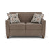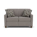 Easy Elegance Settle in alone or with a loved one on this effortlessly elegant loveseat perfectly scaled to fit into any size space. A tight back and soft, reversible box seat cushions offer firm yet comfortable support. Simple, clean lines, refined welt detailing, and two accent pillows make this loveseat an essential element of any living space. Small-scale piece perfect for compact spaces Built to last with the C-Flex Blue Steel Spring™ Clean, tailored tight back for firm support Design-forward details including refined track arms and welt trim Square tapered wood legs in attractive Florentine finish offer understated style Comes with two accent pillows to enhance comfort and style Comfortably seats two Model Number: 5890-20 Dimensions 36H x 55W x 35L