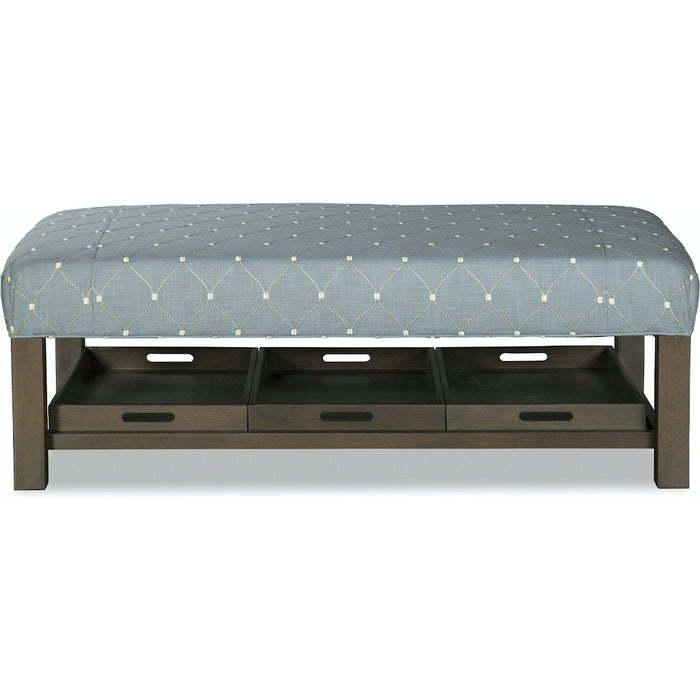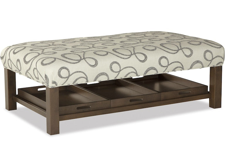 You'll love this generously scaled cocktail ottoman for it's looks, but you'll really enjoy its functional side too. A part of the Paula Deen Home collection, it features a plush top and handsome transitional lines. But hidden underneath is the real prize- a trio of matching trays - perfect for snacks, beverages, or even a game. Use them anytime or all the time! Available in any finish, any fabric!