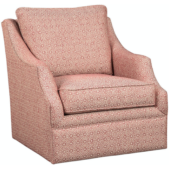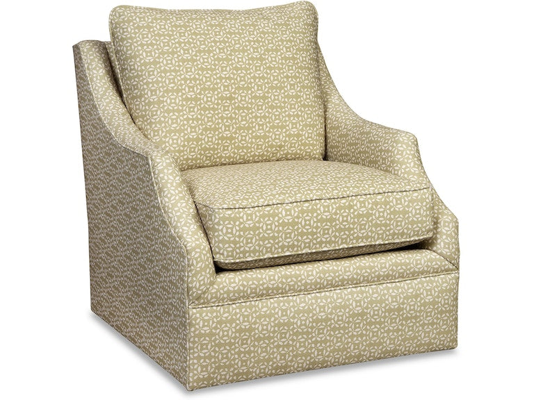 Perfectly designed and easy to love, this swivel chair is a comfortable classic piece you will love for years to come. It features a beautifully shaped scallop arm, a loose knife edge back pillow, and Paula's exclusive Down Blend cushion for the ultimate in softness. Also available as a swivel glider using style P087410BDSG