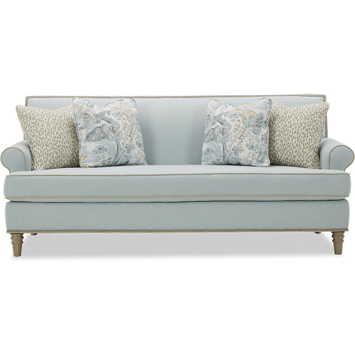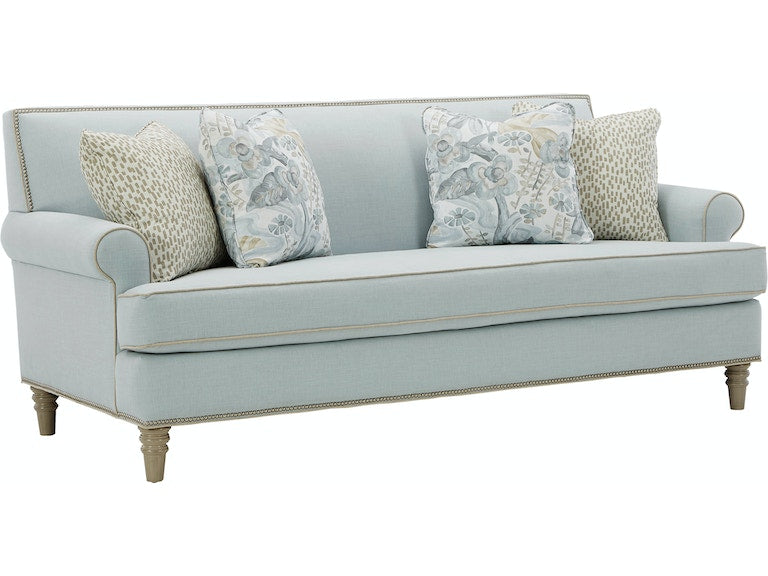 You've heard of a showstopper? The show will definitely stop when your guests get their first look at this stunning sofa from the Paula Deen Home collection! The clean, transitional styling of this sofa is accented with gorgeous nail head trim around the back rail and the base. It features sock arms, a tight back, bench seat, and as always, Paula's exclusive premium Down Blend seat cushion for the ultimate in softness. Standard with 2 pairs of pillows. Also available is the matching loveseat, chair, and ottoman. Also available without nail head trim.