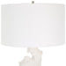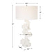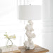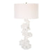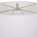 Crafted from man-made white stone that accurately replicate the look of Thassos marble, the Remnant Table Lamp doubles as lighting and a modern work of art that's accented with brushed nickel plated details. The hardback drum shade is covered in white linen fabric.