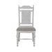 Designed to entice a sense of calm and tranquility into interior spaces, the River Place panel back side chair strikes the perfect balance of life on the coast and a comfy home tucked away in the hills. Crafted with Pine solids, this chair features a Riverstone White finish. It has a woven weave panel back and a padded seat upholstered in a Textured Linen fabric. The cap rail has a softly shaped arched and finial accents. The heavy round turned legs feature nylon chair glides to protect your flooring. The River Place collection creates an inviting airy atmosphere in your home while providing comfort in your own private getaway.
