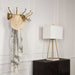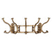 A whimsical cast aluminum wall mounted coat rack, featuring elegantly curved hooks finished in antique brass. Hooks are stationary.