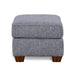 Simple, Classic Tailoring in a Timeless Style Showcase your home with the timeless charm of the Thornton ottoman. Tapered block legs and a welt-corded trim make it the ideal piece to rest tired legs. Offered in your choice of fabric, this ottoman pairs perfectly with the rest of the Thornton group. Upholstered in your choice of fabric, including those with performance and sustainability characteristics Sustainably-sourced, kiln-dried wood frame with mortise and tenon joinery for lasting strength and durability High resiliency cushion is engineered to maintain its shape over time Square tapered legs are available in three finish options Handcrafted in North America Model Number: 5535-08 Dimensions 19H x 32W x 26L