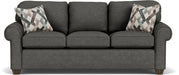 Simple, Classic Tailoring in a Timeless Style Showcase your home with the timeless charm of the Thornton sofa. Smoothly rolled edges and arms, tapered block legs, and a welt-corded trim make it the quintessential living area piece. Offered in your choice of fabric, this sofa provides the style and comfort that has made it one of our long-time best sellers. Transitional style with rolled arms and a welt-corded trim detail Upholstered in your choice of fabric, including those with performance and sustainability characteristics Includes two accent pillows in your choice of fabric to match your personal style The patented Blue Steel Spring™ seat system provides unmatched support and lasting comfort Sustainably-sourced, kiln-dried wood frame with mortise and tenon joinery for lasting strength and durability High resiliency seat cushions are engineered to maintain their shape over time and are reversible for easy cleaning, rotating and flipping Fiber-filled, semi-attached back cushions are designed to stay in place for a tidy appearance Square tapered legs are available in three finish options Handcrafted in North America Model Number: 5535-31 Dimensions 38H x 86W x 35L