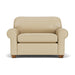 Simple, Classic Tailoring in a Timeless Style Showcase your home with the timeless charm of the Thornton chair and a half. Smoothly rolled edges and arms, tapered block legs, and a welt-corded trim make it the quintessential living area piece. Offered in your choice of leather or Kashmira, this extra wide chair provides the style and comfort that has made it one of our long-time best sellers. Transitional style with rolled arms and a welt-corded trim detail Upholstered and expertly tailored in your choice of leather or Kashmira fabric The patented Blue Steel Spring™ seat system provides unmatched support and lasting comfort Sustainably-sourced, kiln-dried wood frame with mortise and tenon joinery for lasting strength and durability High resiliency seat cushion is engineered to maintain its shape over time and is removable for easy cleaning and rotating Fiber-filled, semi-attached back cushion is designed to stay in place for a tidy appearance Square tapered legs are available in three finish options Handcrafted in North America Model Number: 3535-101 Dimensions 38H x 54W x 35L