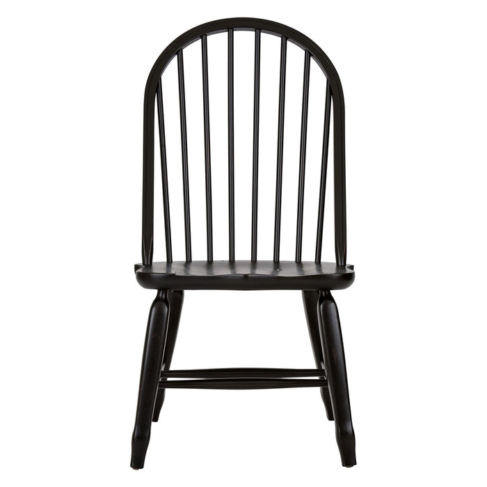 Sit in style with the Treasures bow back side chair. Crafted of rubberwood solids, this piece features a rustic black finish, nylon chair glides to protect your flooring, and saddle shaped seating for added comfort. This chair is available in an alternative finish. Treasures offers simple shaker styled dining in a subtle finish which evokes the feel of a treasured antique.