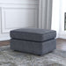 A classic look made for lounging With a tall, padded base and welt cording, the Vail ottoman is a perfect match to two of our chair styles. Concealed casters allow you to easily move this piece throughout the room. Concealed casters Model Number: 7305-08 Dimensions 17H x 31W x 23L