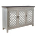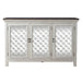 Transform your home with the Westridge 56" accent cabinet. Crafted of Eucalyptus solids and Ash veneers in an antique white finish. Features three mirrored doors with decorative floral pattern overlays, block feet and one concealed fixed shelf behind doors. A unique piece that will work with any décor from traditional to contemporary.