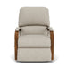 Beautiful oak arm accentuates a curvy frame The Woodlawn recliner spotlights a beautifully curved Valencia-finished arm topped off with a soft upholstered arm cap. The comfort of the fully padded footrest, divided back cushions, and refined scaling make Woodlawn a great recliner for any setting. Rock back and forth while relaxing, or effortlessly recline at multiple angles from an upright to a fully reclined position. Available in more than 250 fabric options Also available in Performance fabrics - Revolution and LiveSmart Beautiful Valencia-finished wood arms topped with upholstered arm caps Safety locks prevent the furniture from rocking while reclining. Removable backs allow for easy lifting and maneuvering through doorways. Model Number: 4820-51 Dimensions 41H x 30W x 37L